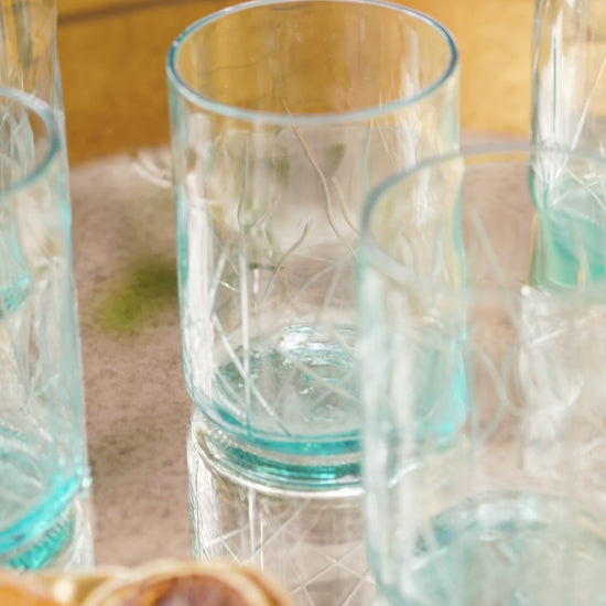 Sustainably crafted in Australia, the Spiriti Tumblers are made from upcycled glass bottles in collaboration with renowned artisans at Small Impact Studio. This set of six lead-free tumblers reimagines the classic lowball whisky glass with a modern, eco-conscious twist. Each piece features delicate hand-etched detailing and a weighty base, balancing timeless elegance with sustainable design. Naturally handcrafted, every tumbler is unique, celebrating subtle variations that make each one truly special.